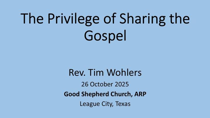 The Privilege of Sharing the Gospel, Rev. Tim Wohlers, pastor
